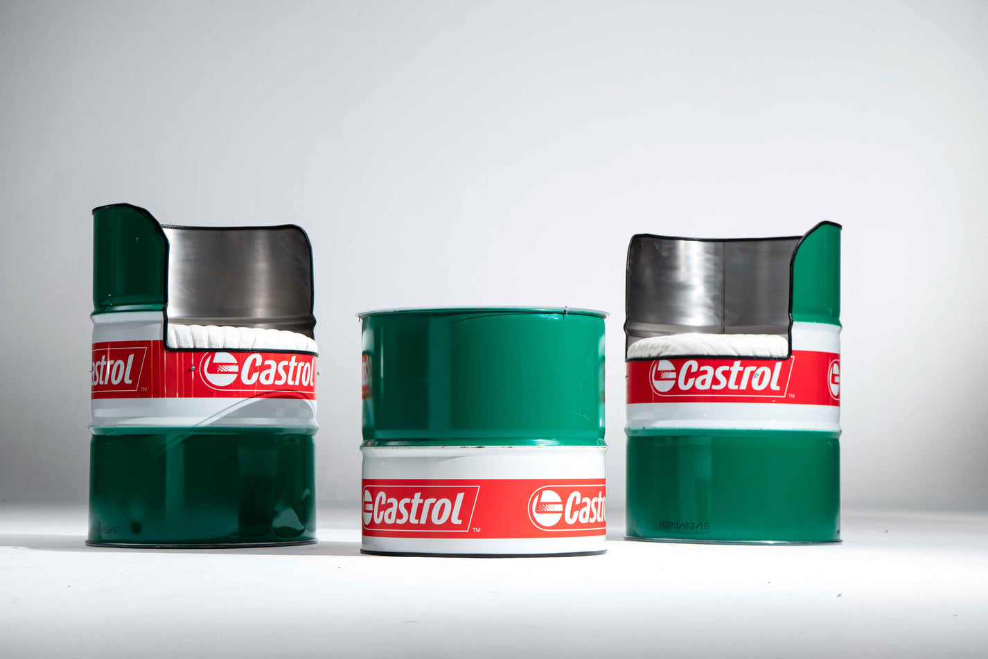 ZEMENTS erste Möbelkollektion entsteht in einer Kollaboration mit wiederverwendeten Castrol-Ölfässern aus dem Rennsport. Die Verbindung zu der Industrie ist etwas, das ZEMENTS schon immer inspiriert hat und tatsächlich auch eines der ersten Prototypen darstellt, welchen der Gründer Luca Loritz als Kunstwerk von ZEMENTS betitelte. Die Verbindung zum Rennsport und der Automobilindustrie steht bei ihm seit der Kindheit im Mittelpunkt, da er quasi zwischen Ölfässern sowie V8- und V10-Motoren aufgewachsen ist.